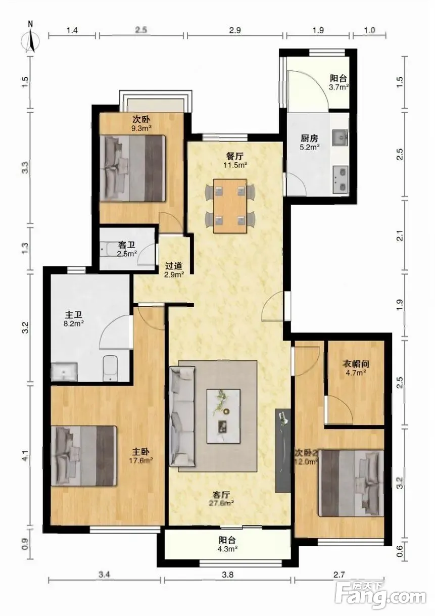 户型齐全,主打南北通透,主卧带卫三居