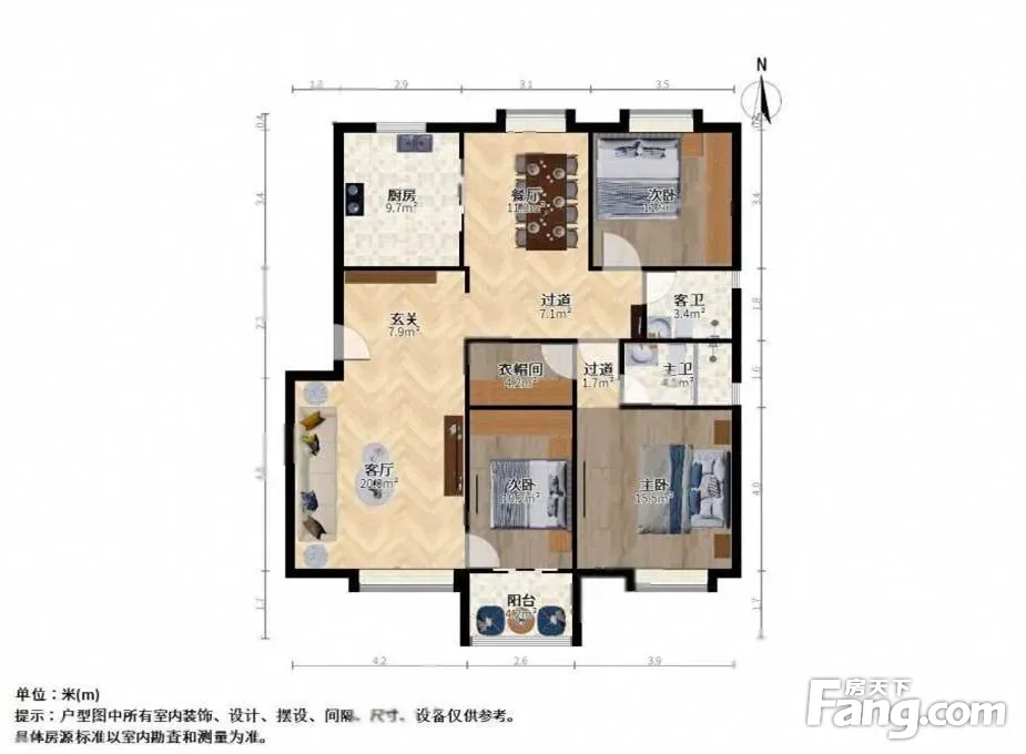 户型齐全,主打客厅朝南三居