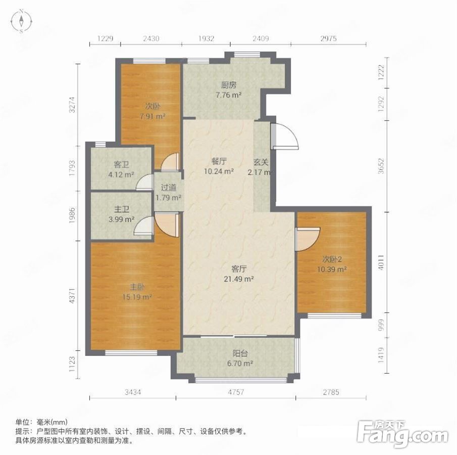 户型齐全,主打明卫,明厨,主卧朝南三居