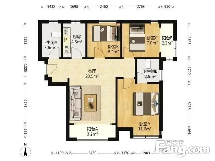 户型齐全,主打南北通透,户型方正三居