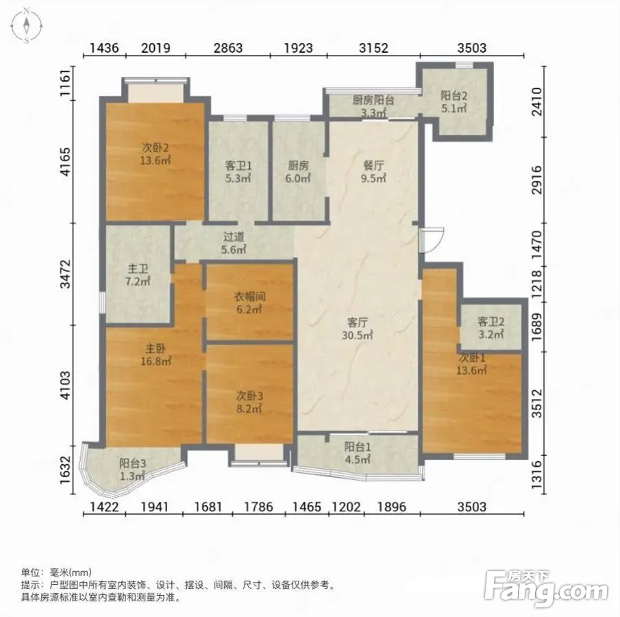 户型齐全,主打南北通透,主卧带卫三居