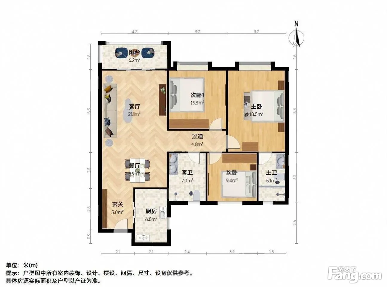 户型齐全,主打南北通透,全明格局三居