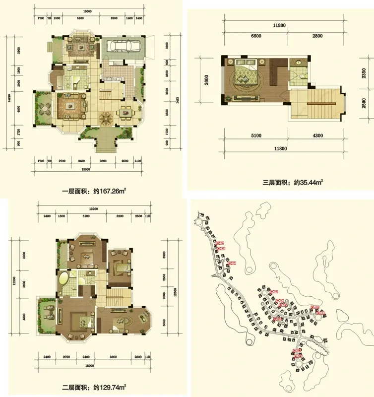 别墅房东改建了的,附一楼客厅,饭厅,厨房,1楼有客厅,书房,2个房间,2楼主卧,衣帽间,次卧衣帽间,带露台
