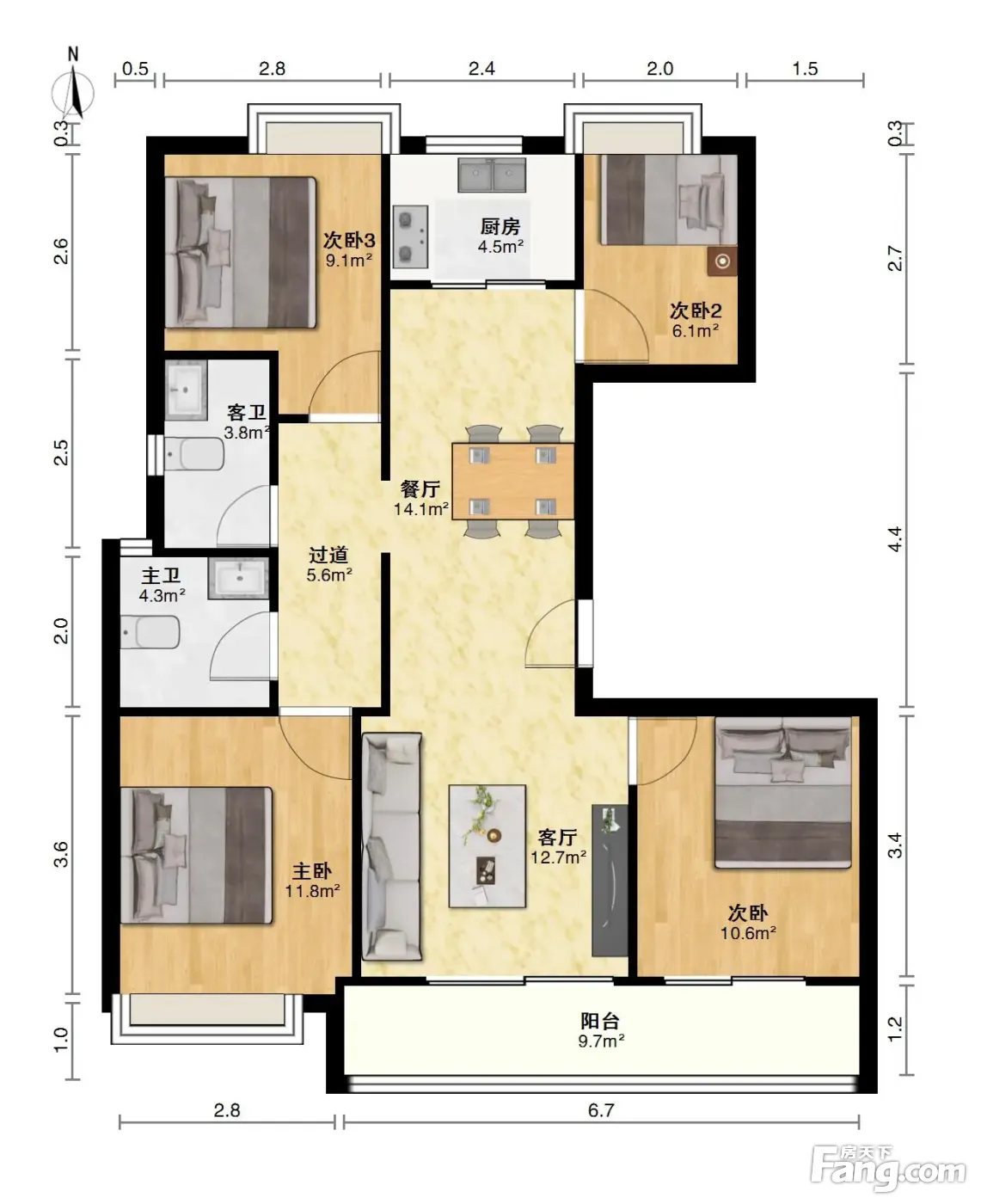 户型齐全,主打南北通透,户型方正三居