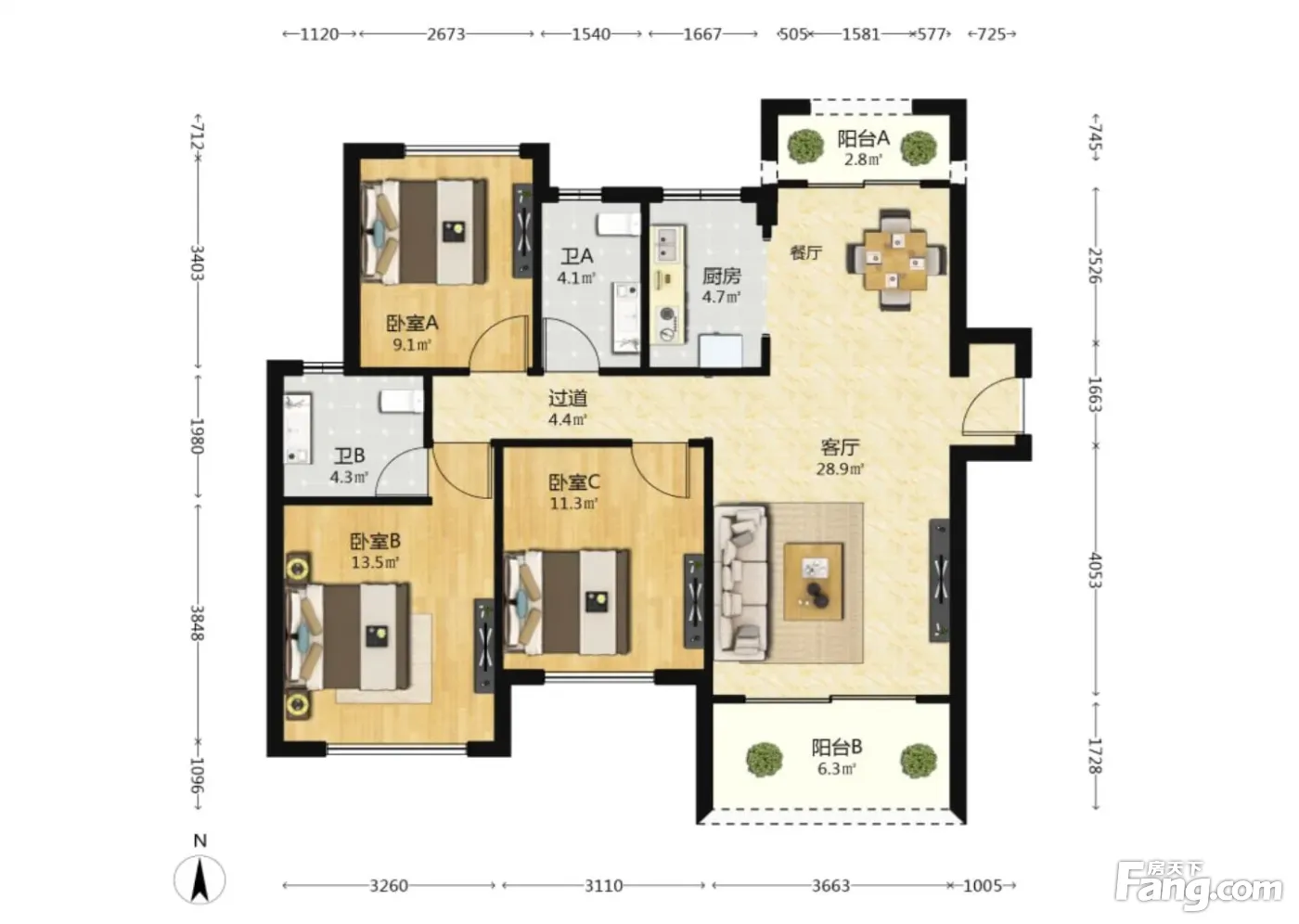 3室2厅1卫