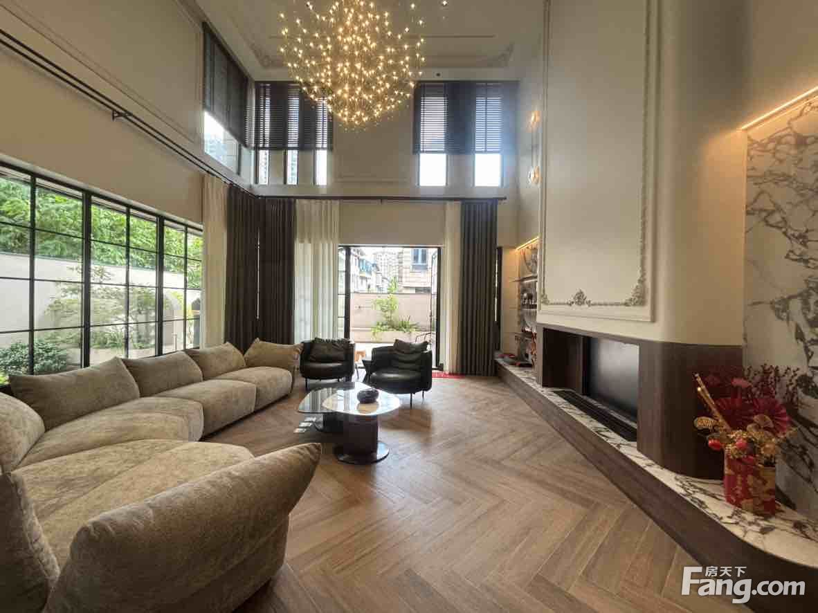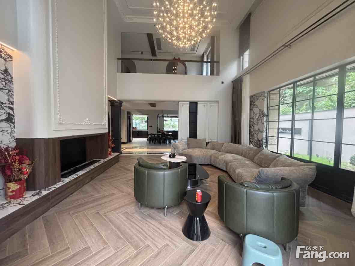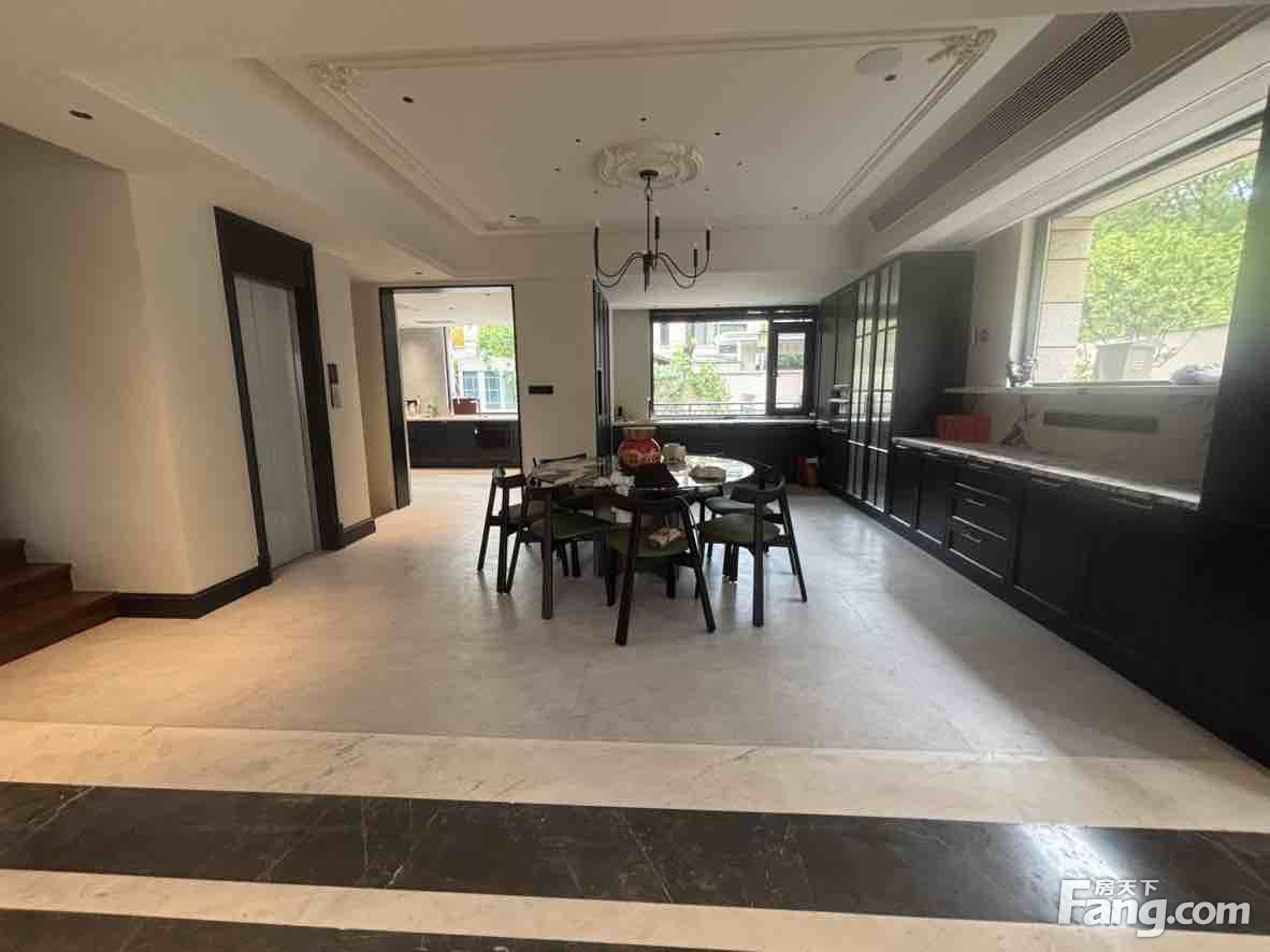 户型方正大气,东端户,上下四层联排别墅,豪装300万从未入住,已安装电梯,业主高迁香港,忍痛出售,客厅挑空的设计,送前后超大花园,送全明地下室,送大露台,5房3厅5卫,采光好,全天太阳。