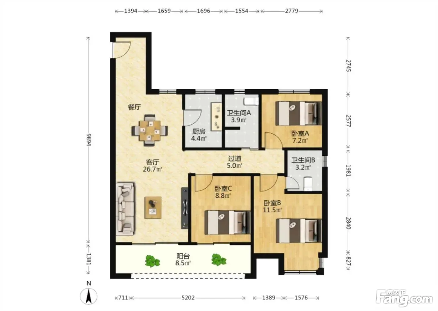 3室2厅1卫
