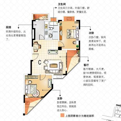 房子全明户型 户型方正,南北通透。3:客厅通阳台,美景直线瞭望。4:房间带飘窗吗,全天太阳,5:客厅大气得房率高。