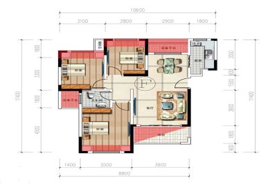 户型齐全,主打户型方正,客厅朝南,主卧朝南三居