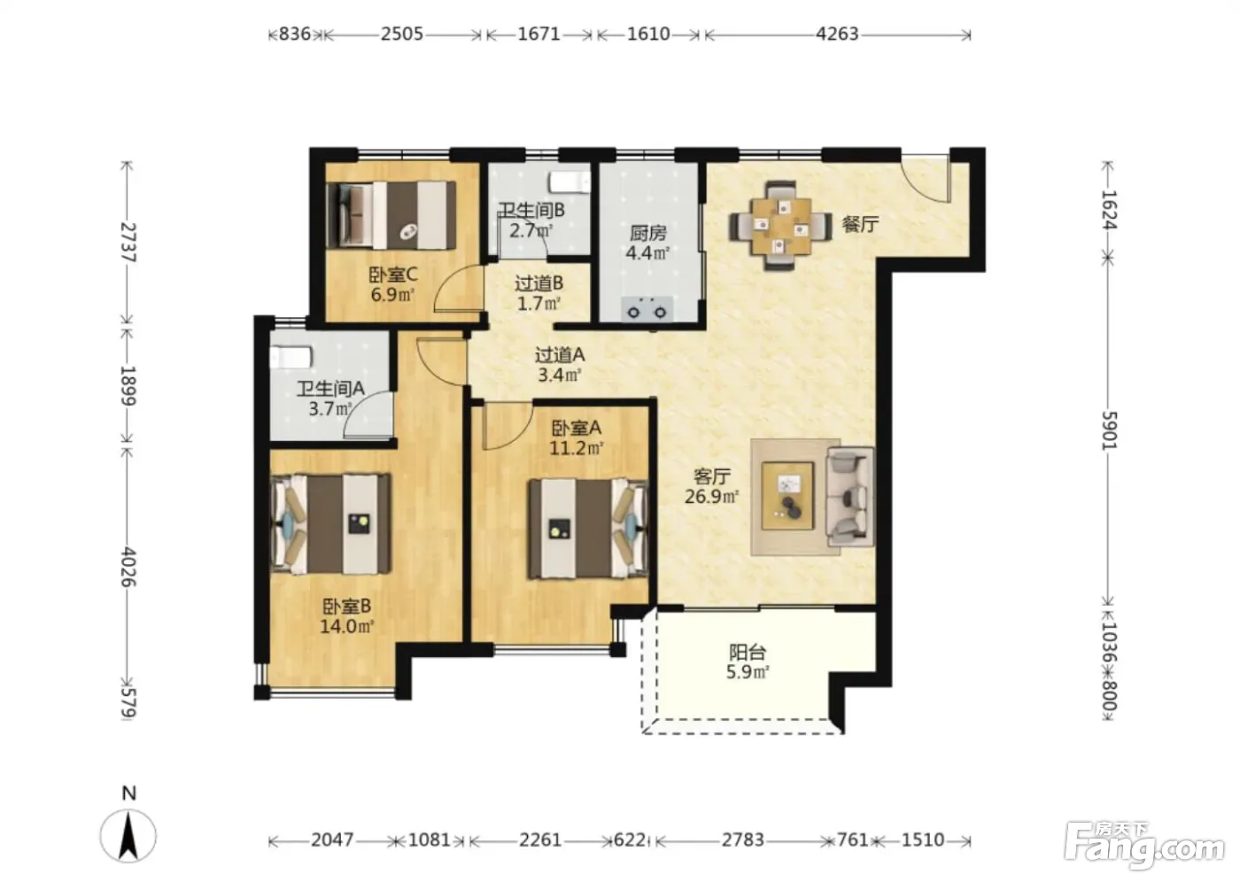 户型齐全,主打户型方正,采光充足三居