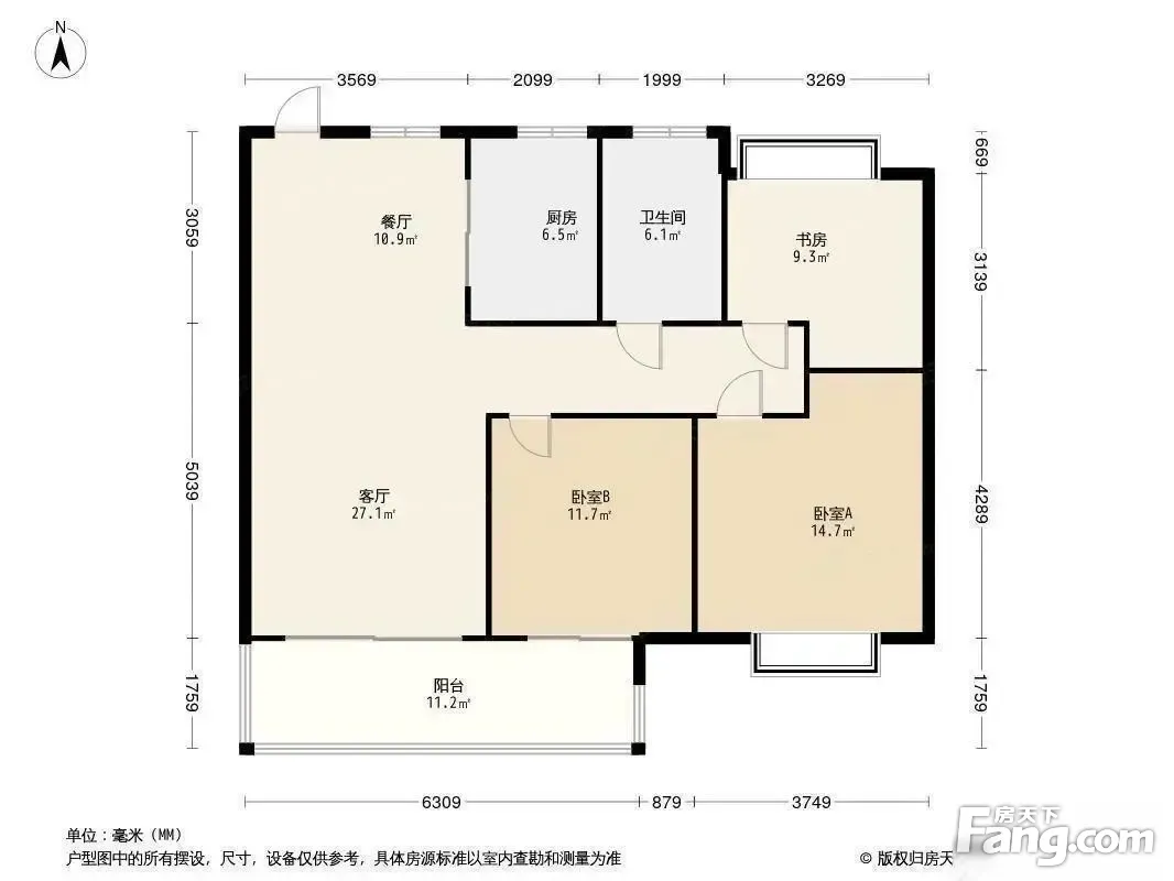 户型齐全,主打全明格局,户型方正三居