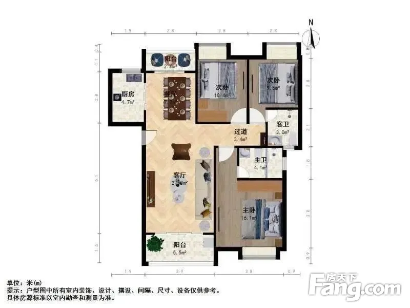 户型齐全,主打客厅朝南,卧室朝南三居