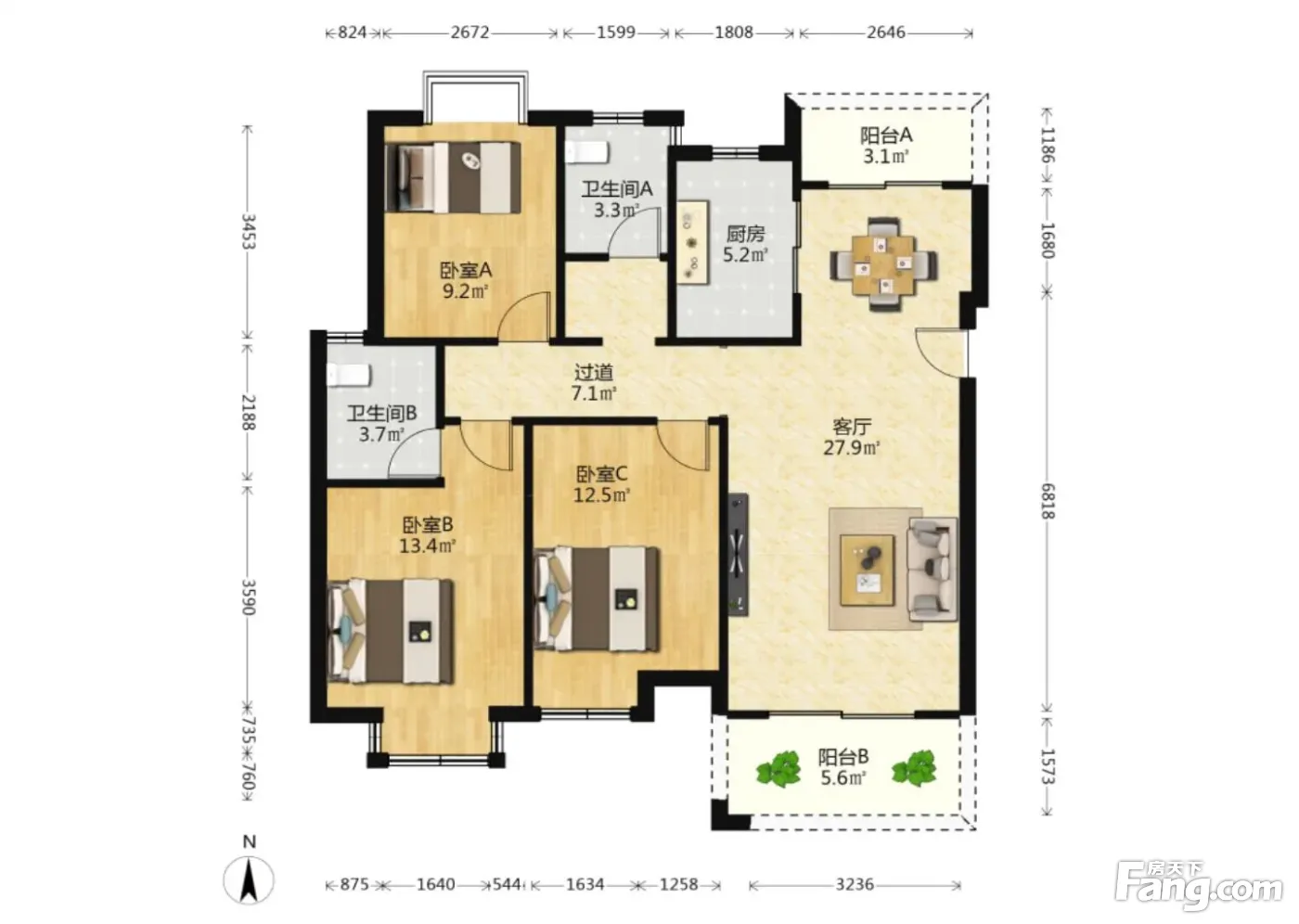 户型齐全,主打南北通透,全明格局三居