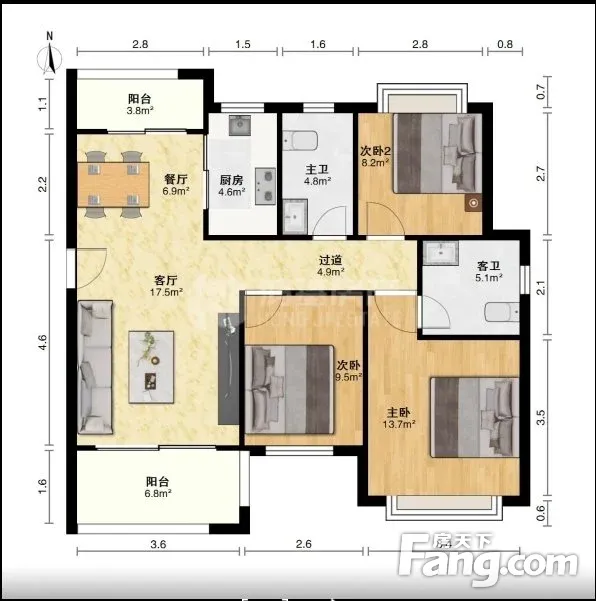 户型齐全,主打户型方正,明厨,明卫,客厅朝南,全明格局,双阳台,双卧朝南,主卧朝南三居