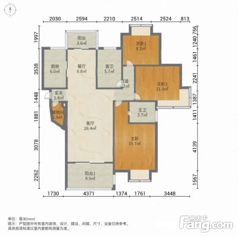 户型齐全,主打户型方正,明卫,明厨,双阳台,双卧朝南,主卧朝南三居