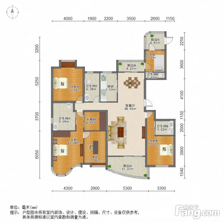 户型齐全,主打南北通透,主卧带卫三居