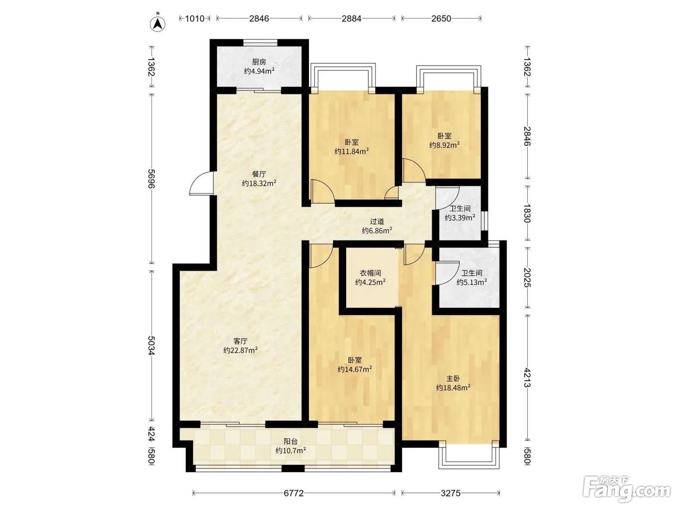 户型齐全,主打户型方正,明卫,明厨,独立衣帽间,主卧朝南三居