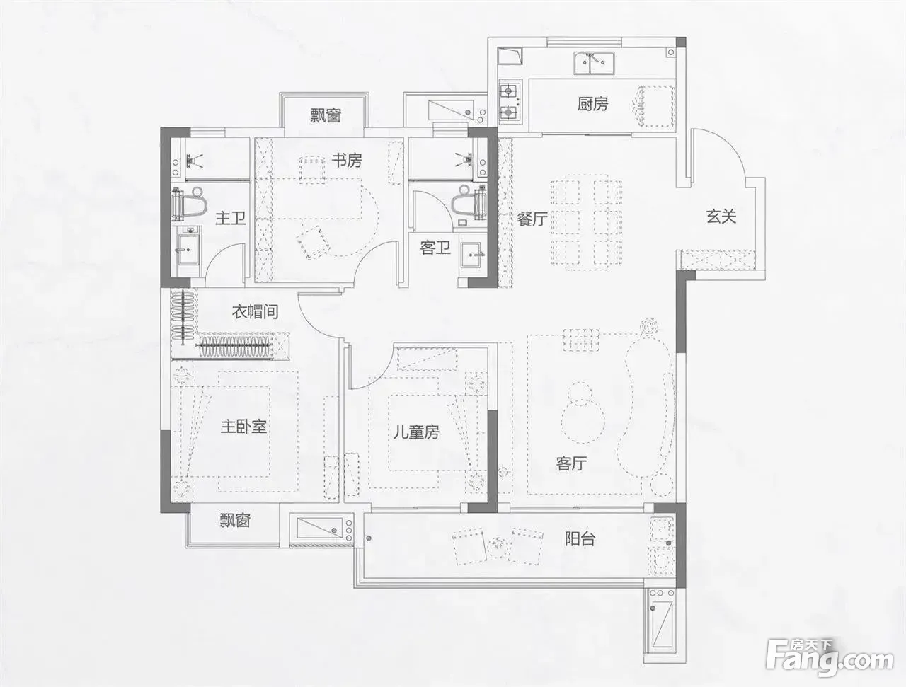 招商金茂依云上城户型主要有89平-113平的南北通透,全明格局,动静分离,三开间朝南的三居 、147平-147平的全明格局,户型方正的四居 。