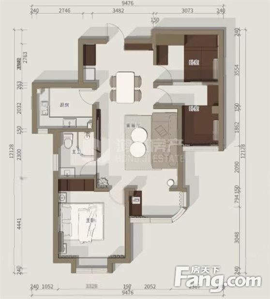 户型齐全,主打明厨,明卫,客厅朝南三居