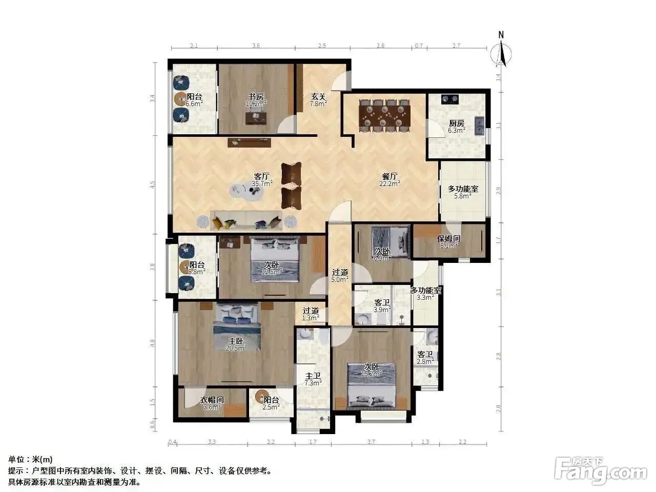 5室2厅3卫,建筑面积:221.67平米,朝向为南北向