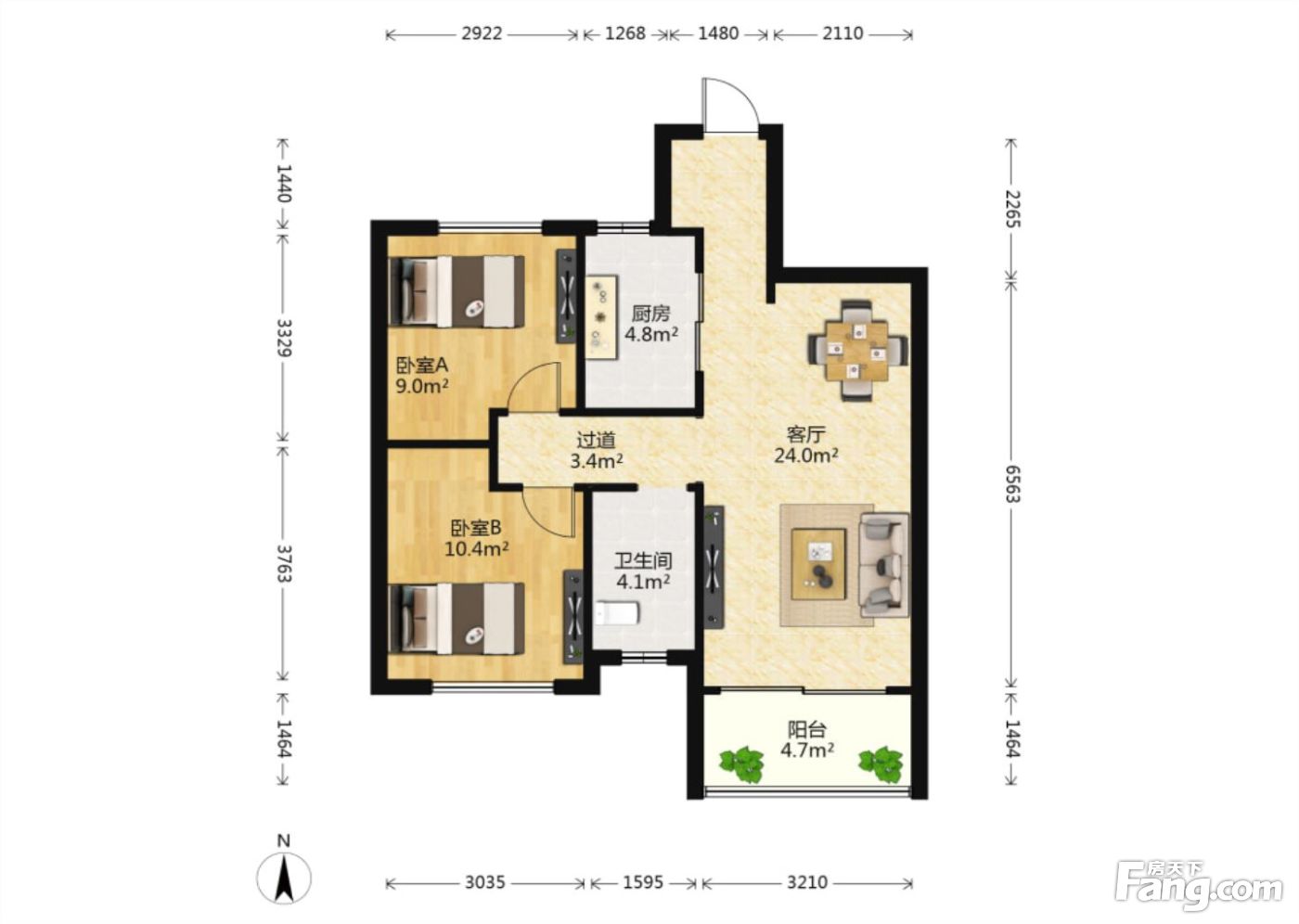 新力钰珑湾南区 2室2厅 南
