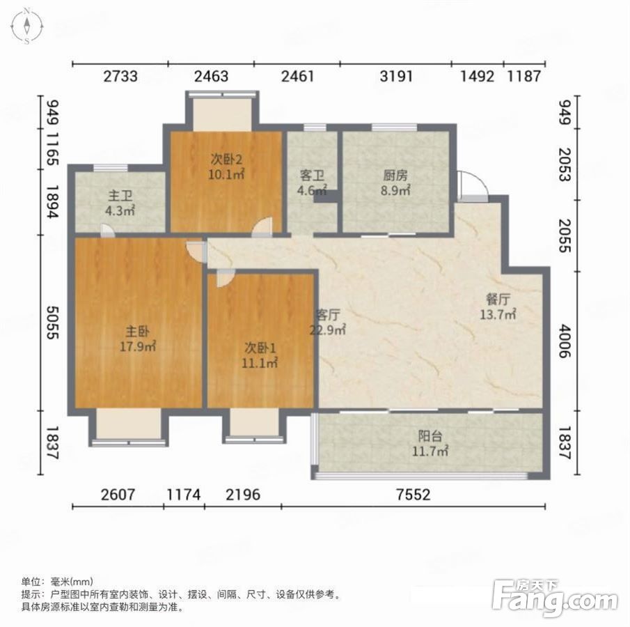 户型齐全,主打南北通透,全明格局,户型方正三居