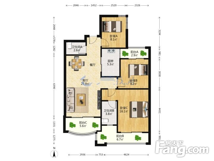 户型齐全,主打户型方正,双阳台,主卧朝南三居