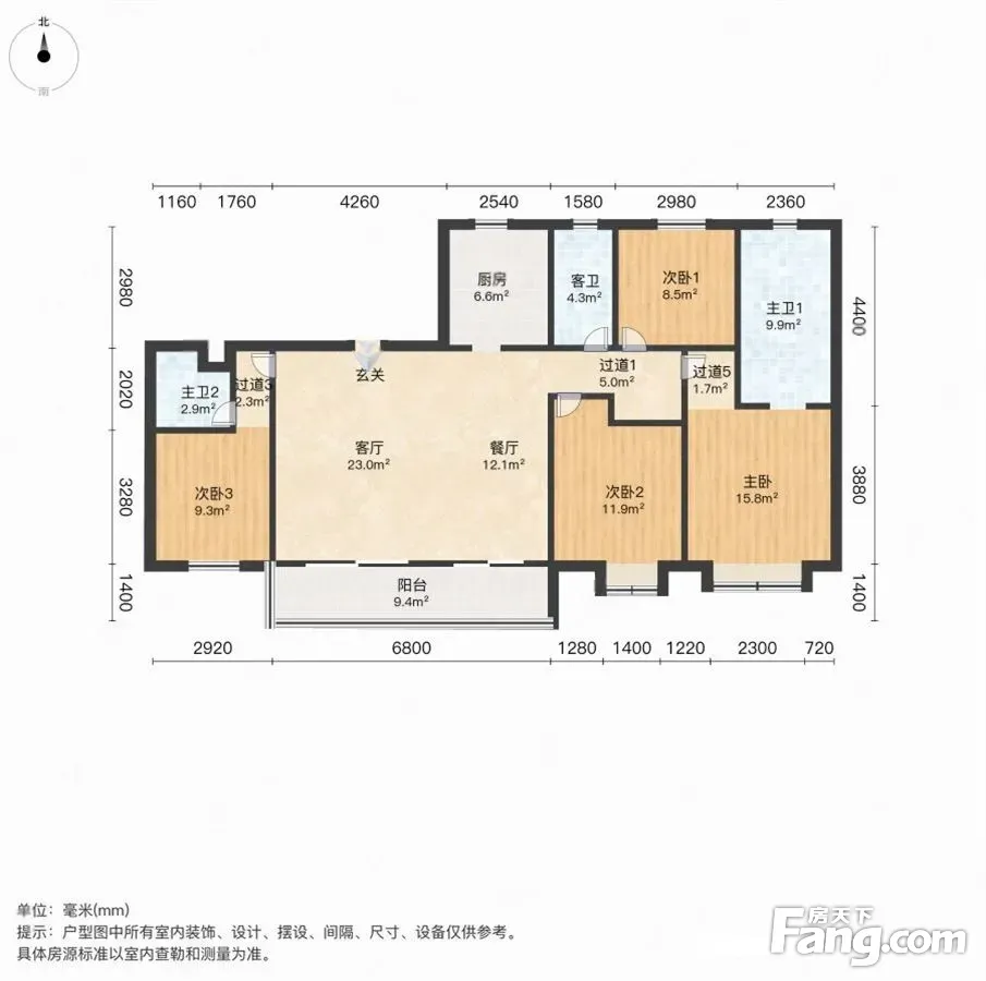户型齐全,主打南北通透,全明格局,户型方正,采光充足三居