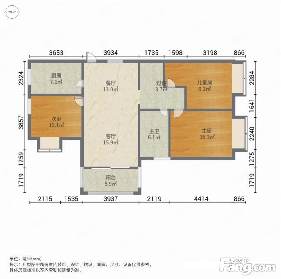 户型齐全,主打明卫,明厨,客厅朝南,全明格局三居