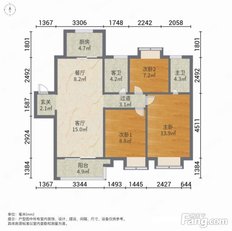 户型齐全,主打全明格局,户型方正三居