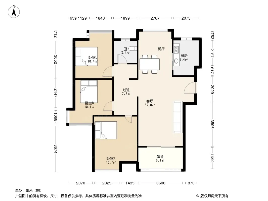 户型齐全,主打户型方正,明卫,明厨,客厅朝南,双阳台,主卧朝南三居
