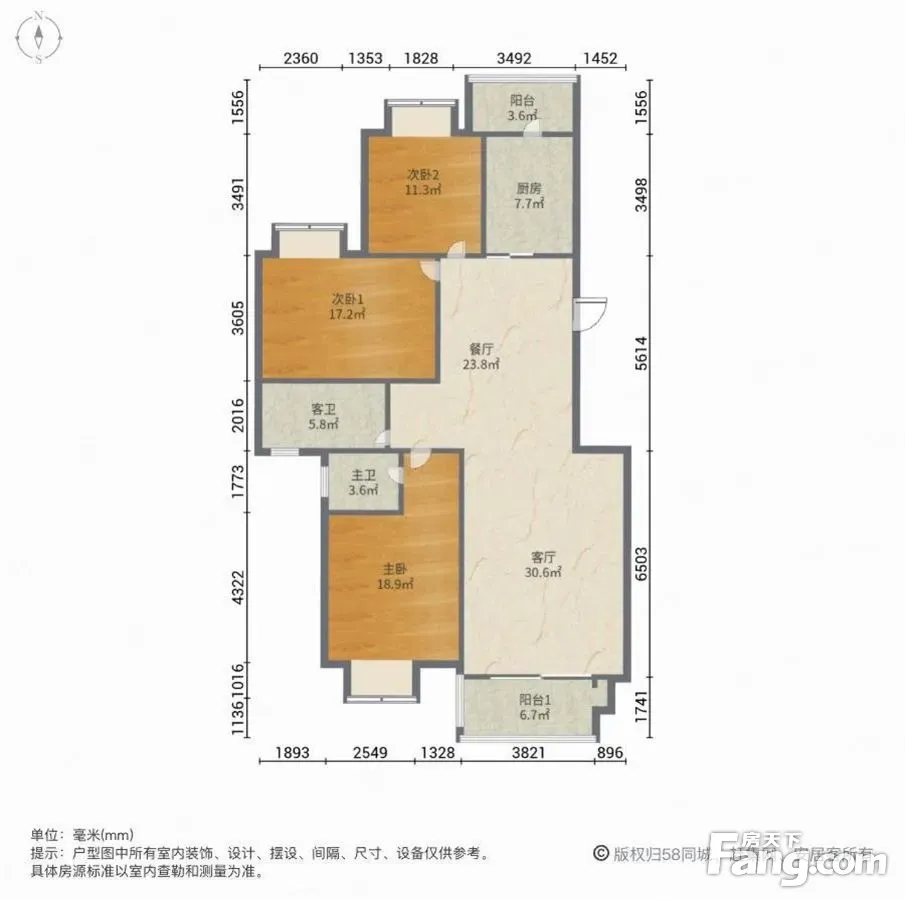 拥有超高的绿化率,堪称天然氧吧,有客户称在此园居住能多活几十年。园区有专门到达公交车站,旁边有,周边正规划建配套设施 巨大。 房源介绍:这套房子是朝向南北的3室2厅2卫,户型超好,大厅主卧朝向合理,每个房间都很大,客厅空间很大,特别敞亮,看过房子的客户清楚;房子保养的非常好,采光相当好,从太阳升起来到落下一直都有采光;