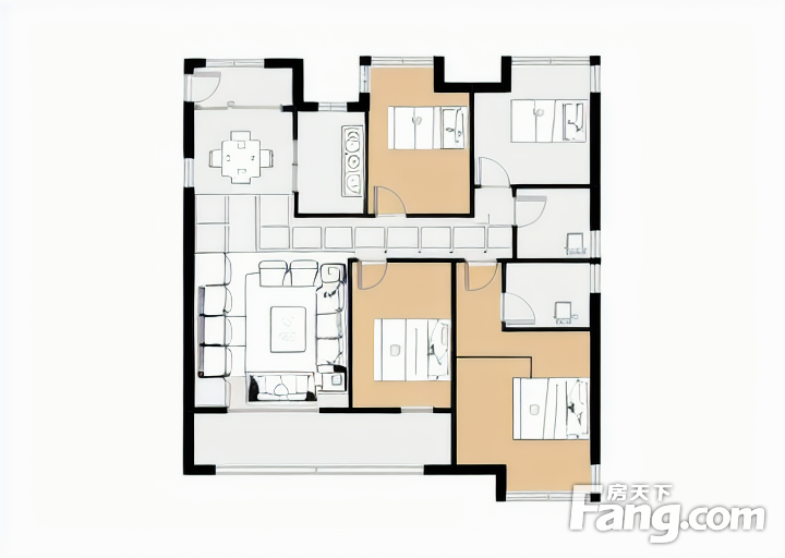 户型齐全,主打全明格局,户型方正,采光充足三居
