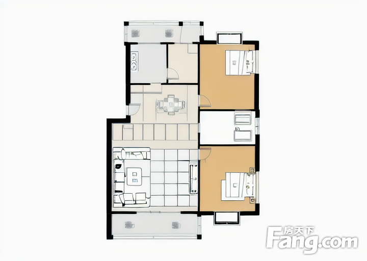 户型齐全,主打客厅朝南二居