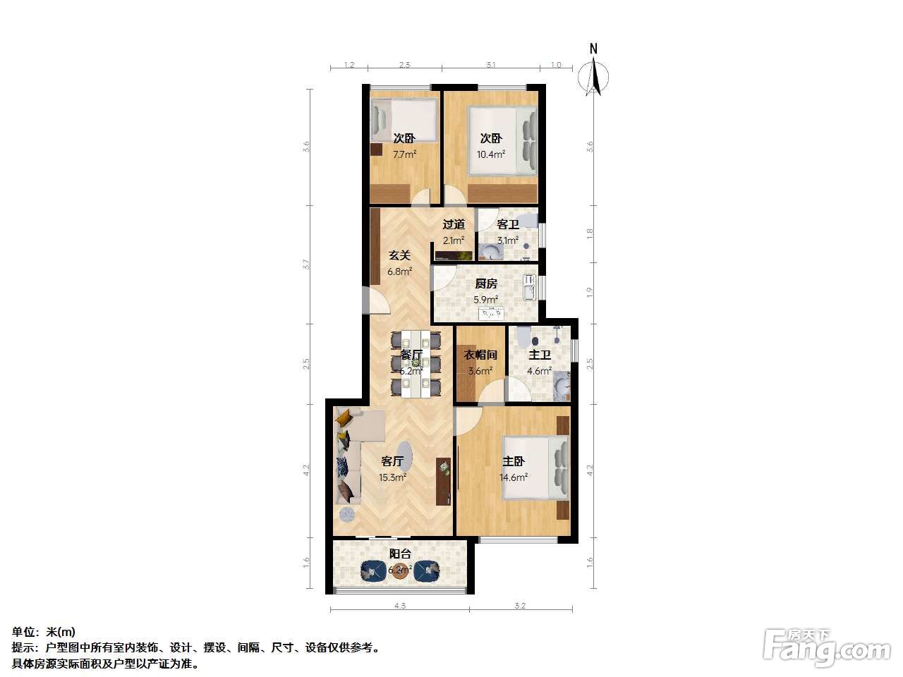 户型齐全,主打户型方正,明卫,明厨,独立衣帽间,主卧朝南三居