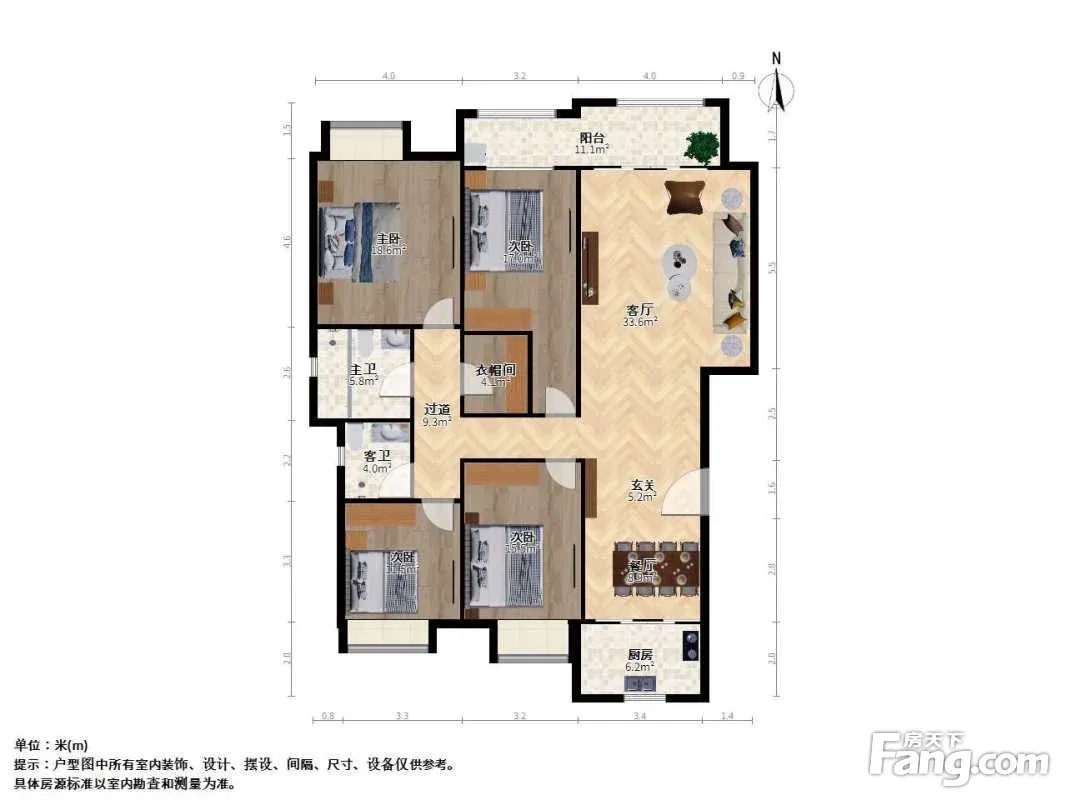 户型齐全,主打户型方正,明卫,明厨,独立衣帽间,主卧朝南三居