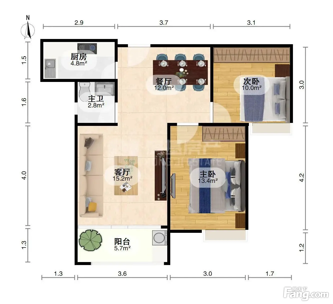 户型齐全,主打南北通透,主卧带卫三居