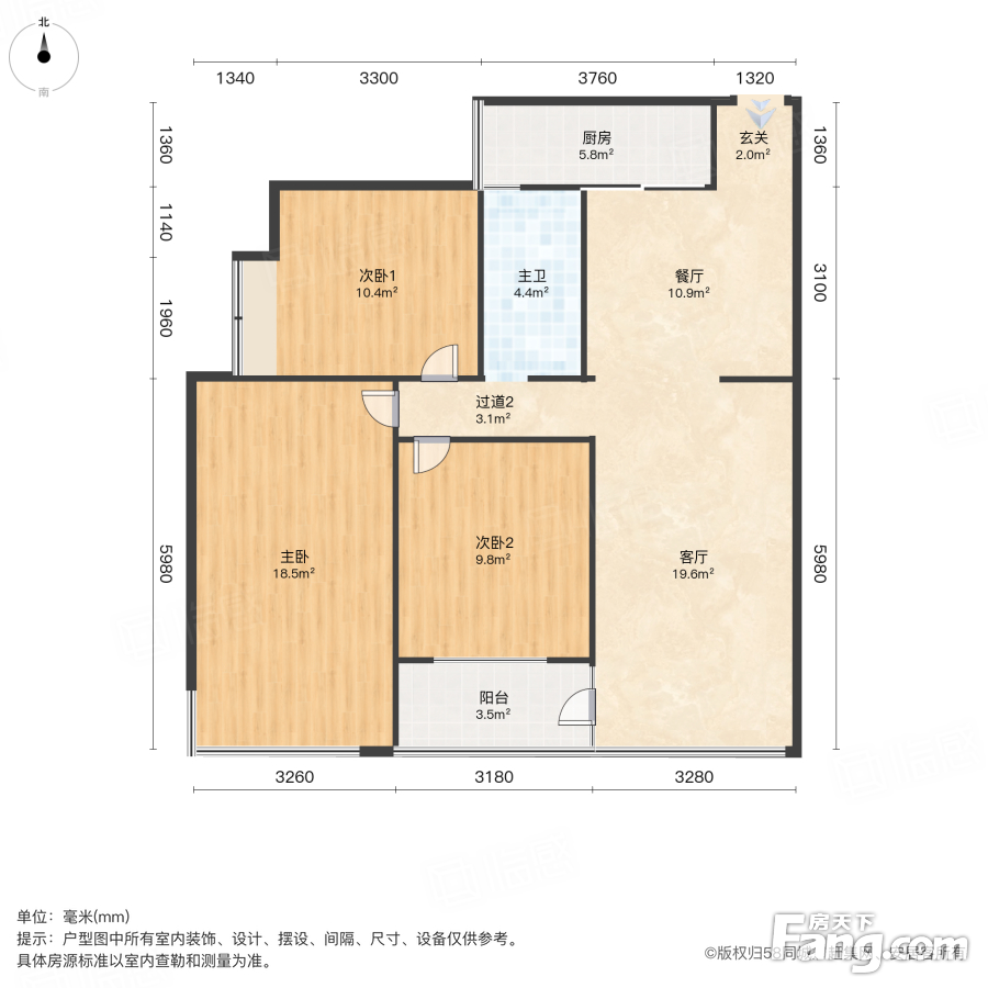 户型齐全,主打客厅朝南三居