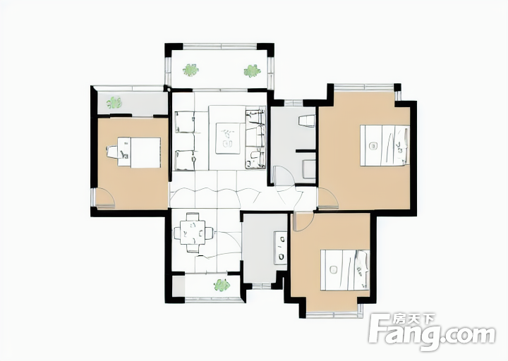 户型齐全,主打明卫,明厨,客厅朝南,全明格局三居