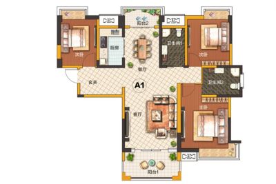户型齐全,主打户型方正,明厨,明卫,双阳台,主卧朝南三居