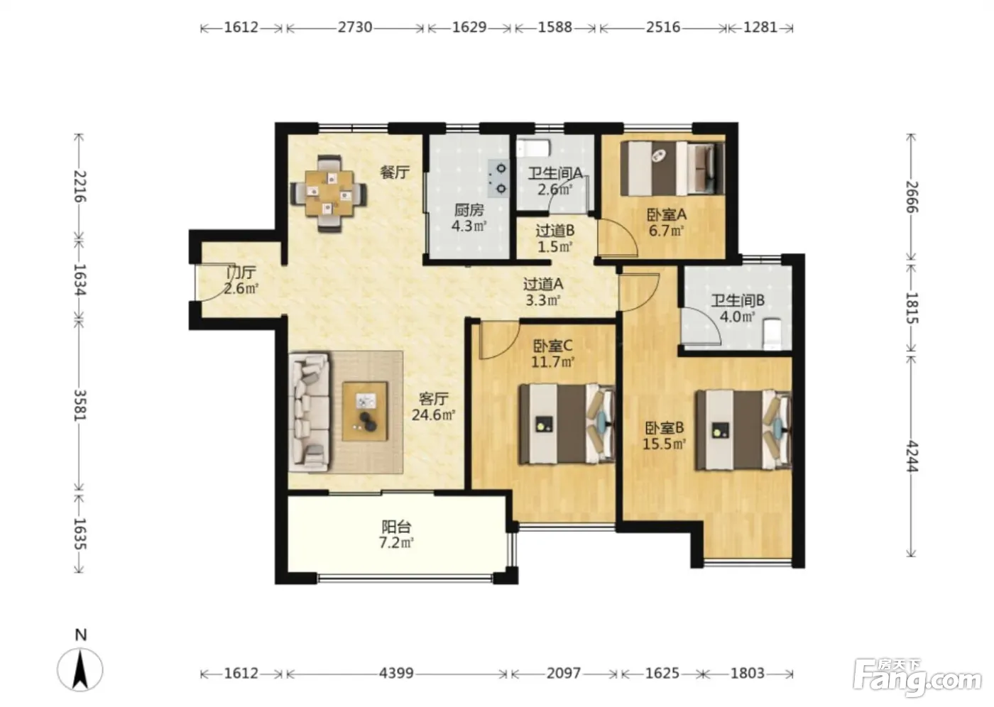 户型齐全,主打全明格局,户型方正三居