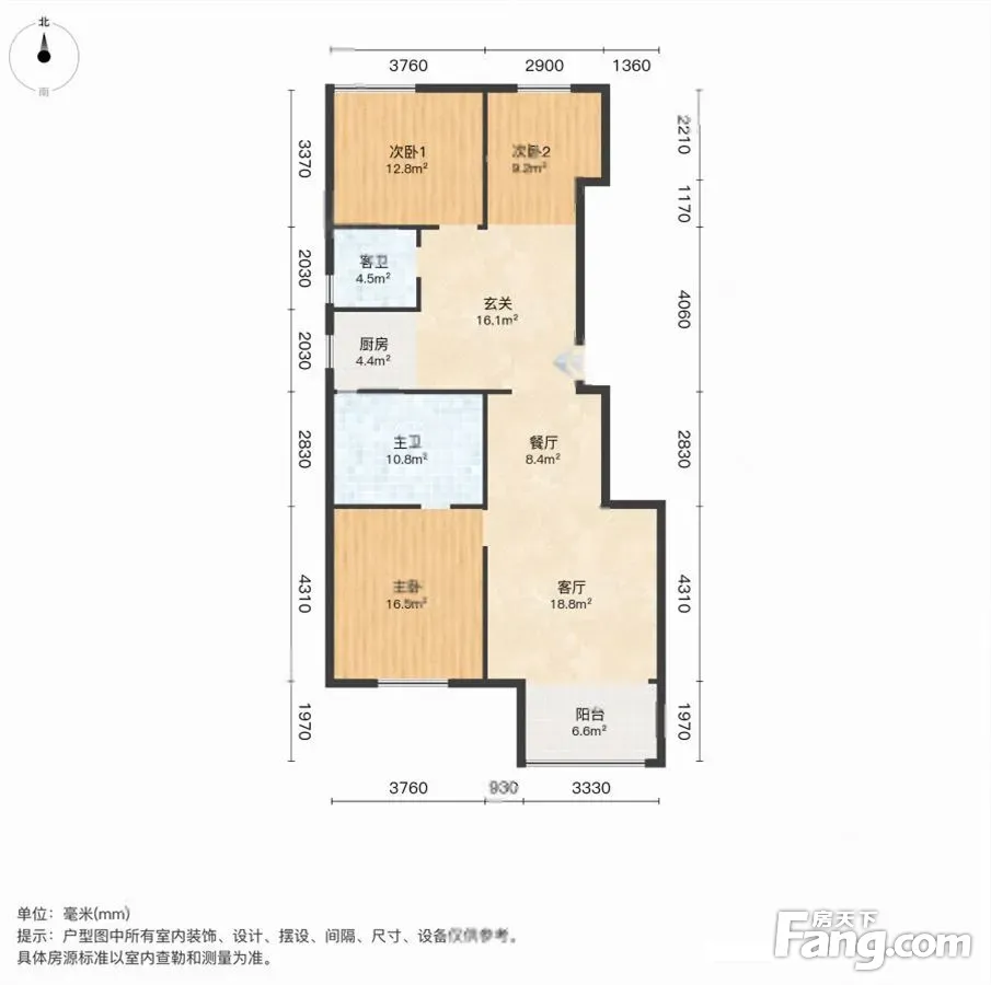 户型齐全,主打户型方正,明卫,明厨,独立衣帽间,主卧朝南三居