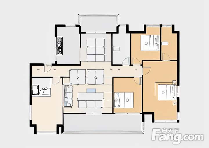 户型齐全,主打南北通透,全明格局,户型方正,动静分离,采光充足三居