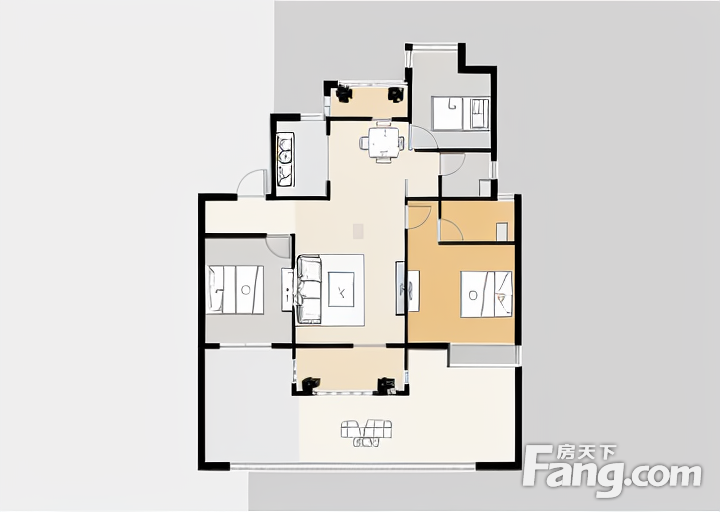 户型齐全,主打全明格局,户型方正,卧室朝南三居