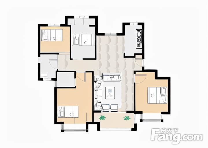 户型齐全,主打户型方正,明厨,明卫,客厅朝南,全明格局,双阳台,双卧朝南,主卧朝南三居