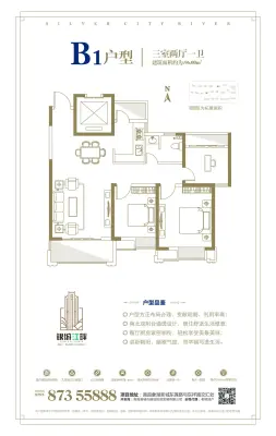 银城江畔 3室2厅 南 北