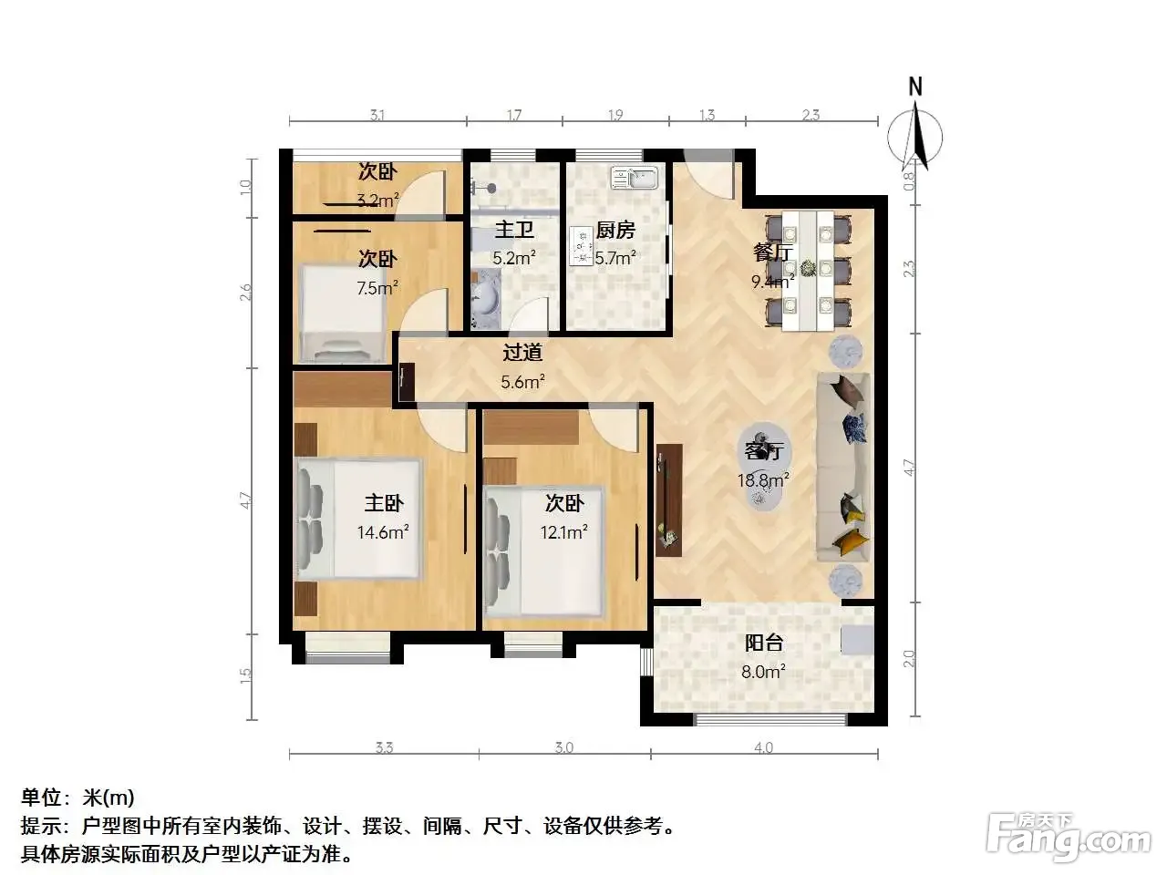 恒锦花苑一区3室2厅南北