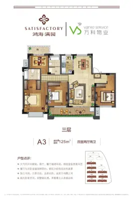 鸿海满园户型主要有85平-117平的南北通透,户型方正的三居 、125平-137平的南北通透,户型方正的四居 。