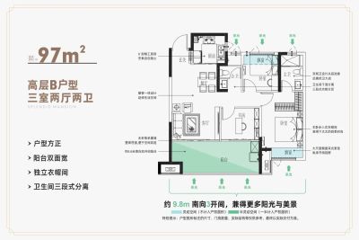 煌盛观云户型主要有97平-114平的南北通透,全明格局的三居 、143平-143平的南北通透,全明格局的四居 。