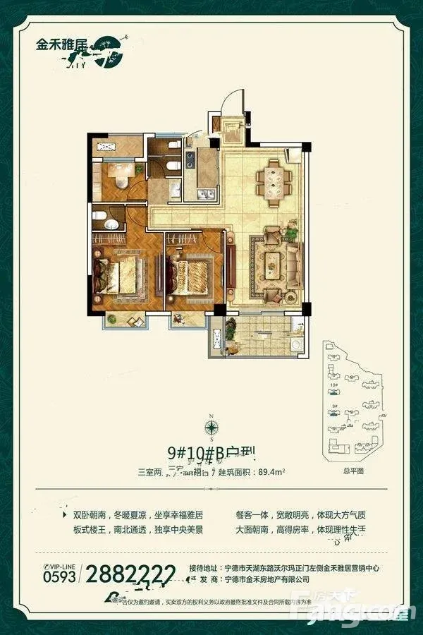 东侨金禾雅居3室2厅 89.8㎡ ,未入住品牌装修拎包入住。